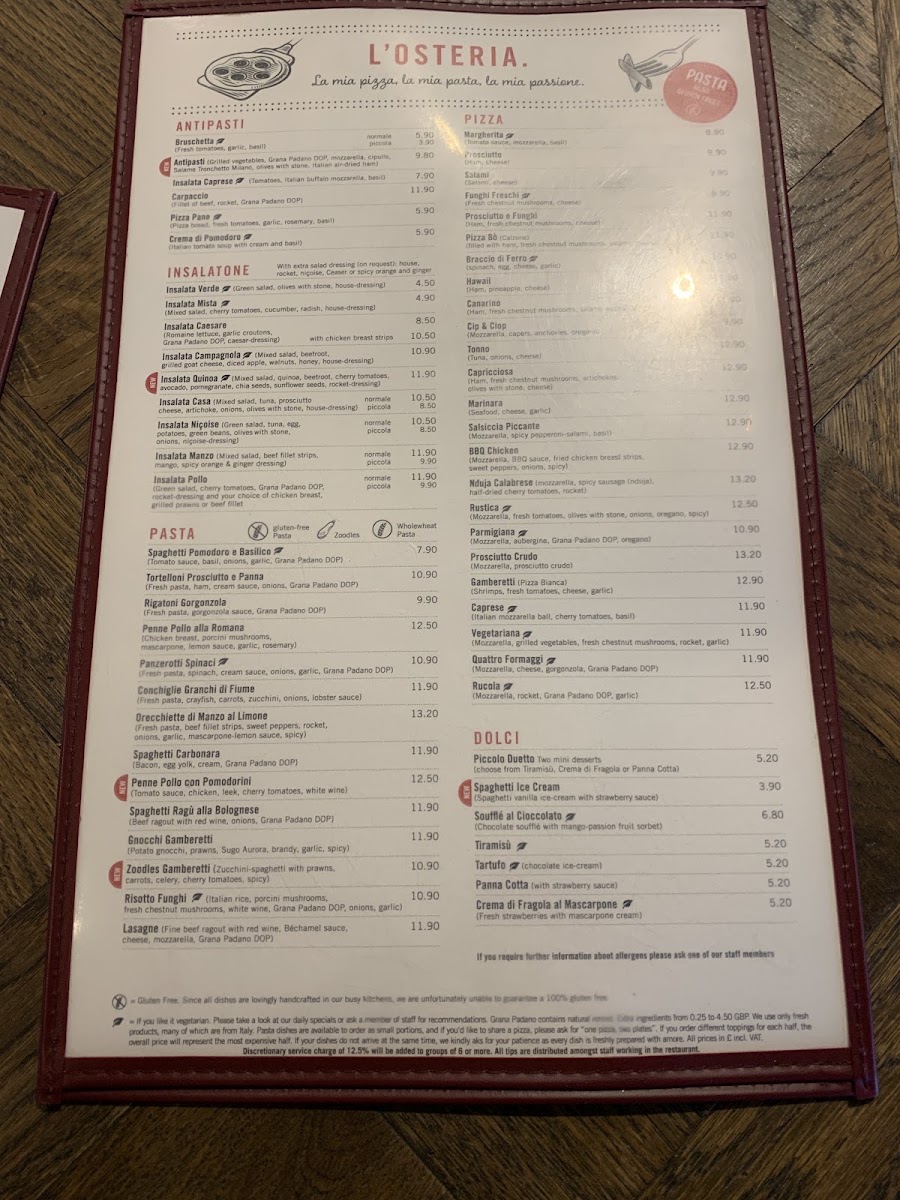 L’Osteria in Bristol offers a delightful dining experience, perfect for anyone looking for authentic Italian cuisine in the heart of the city. Located at Unit SU3, SU5, Catering, Bristol BS1 3BU, the restaurant stands out for its warm ambiance, efficient service, and an extensive menu that truly highlights the best of Italy’s culinary traditions.